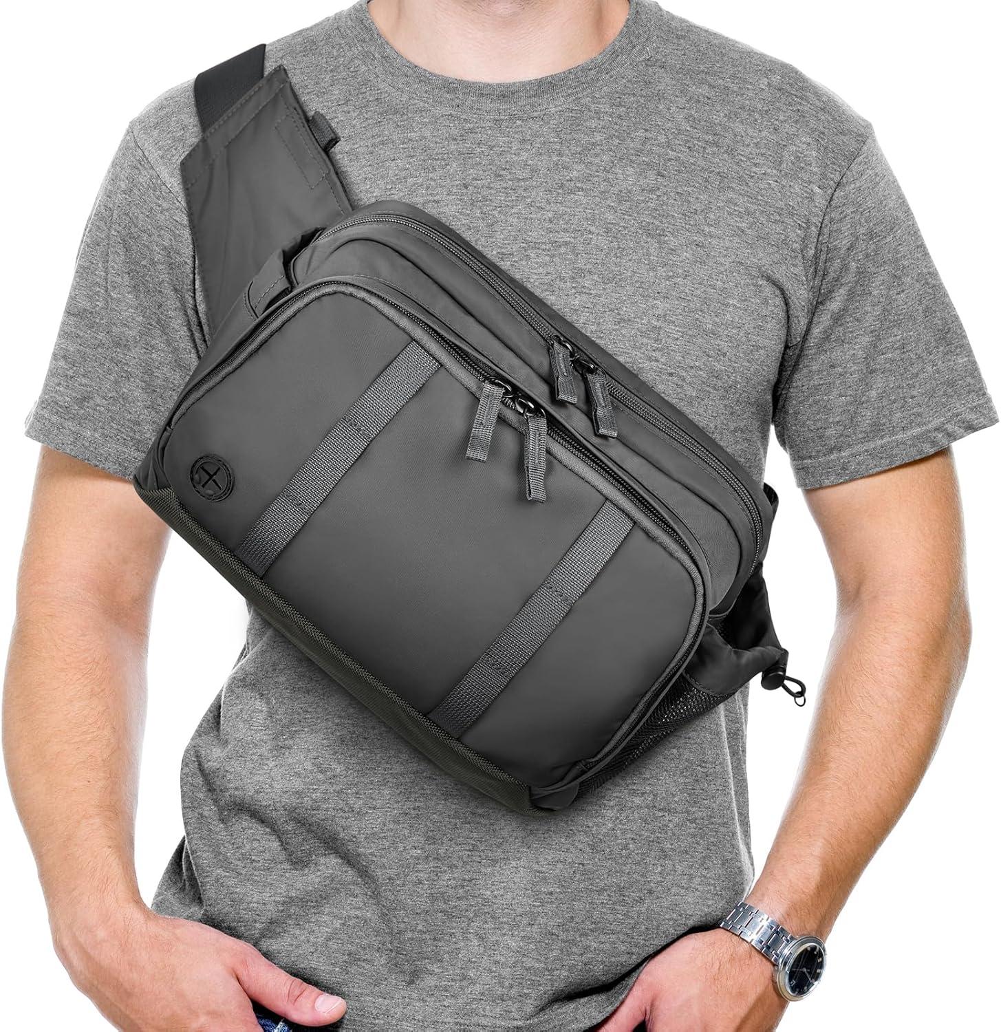 Large Crossbody Waist Bag Tactical Fanny Pack for Men Hip Bum Bag with Water Bottle Holder Adjustable Belt, Workout Traveling Casual Running Hiking Cycling(Grey)