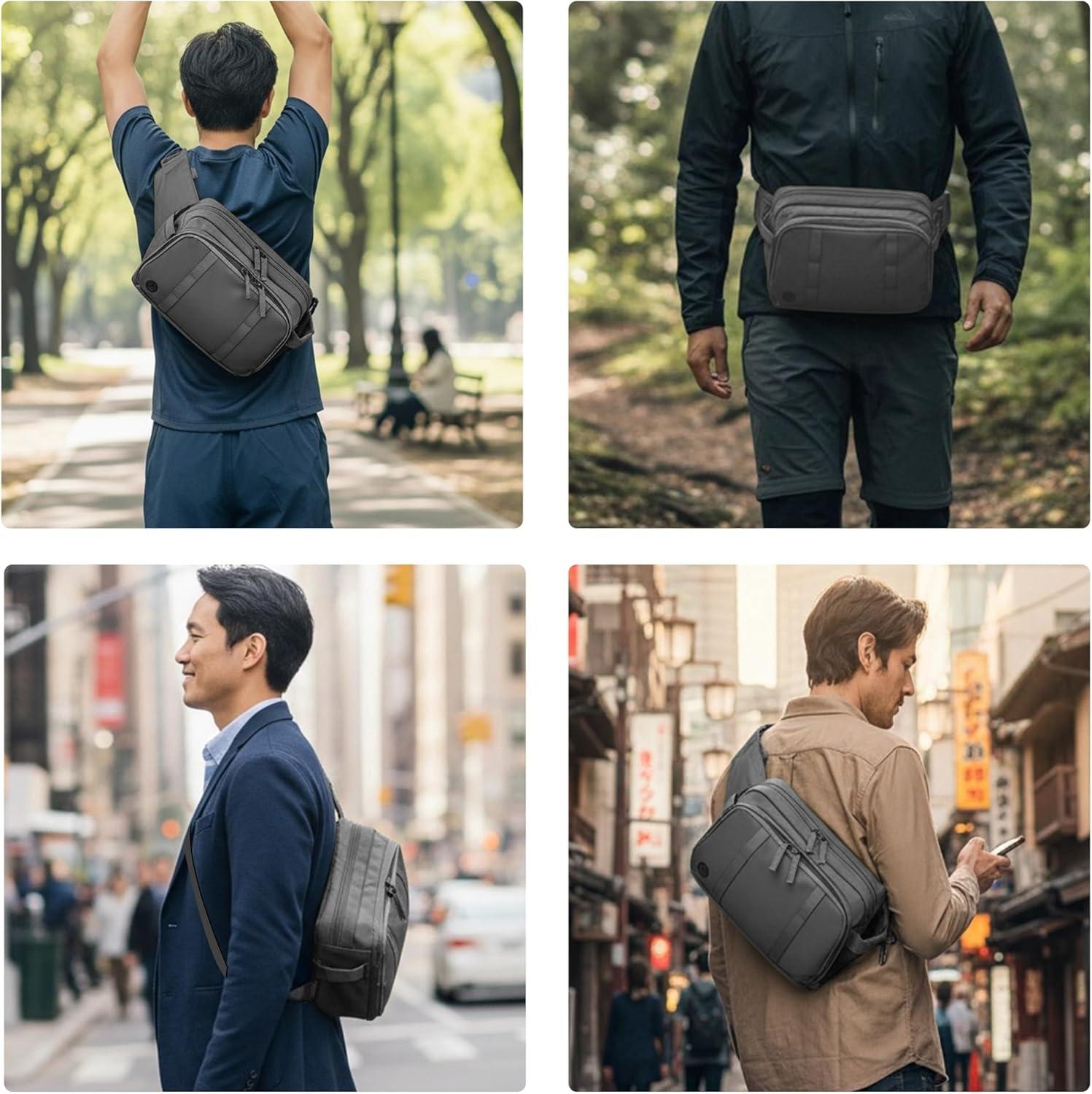 Convert in Seconds: Switch Between Waist Pack & Chest Carry – Engineered with quick-release buckles that transform from secure waist bag to stable crossbody chest pack in under 5 seconds – no need to empty compartments