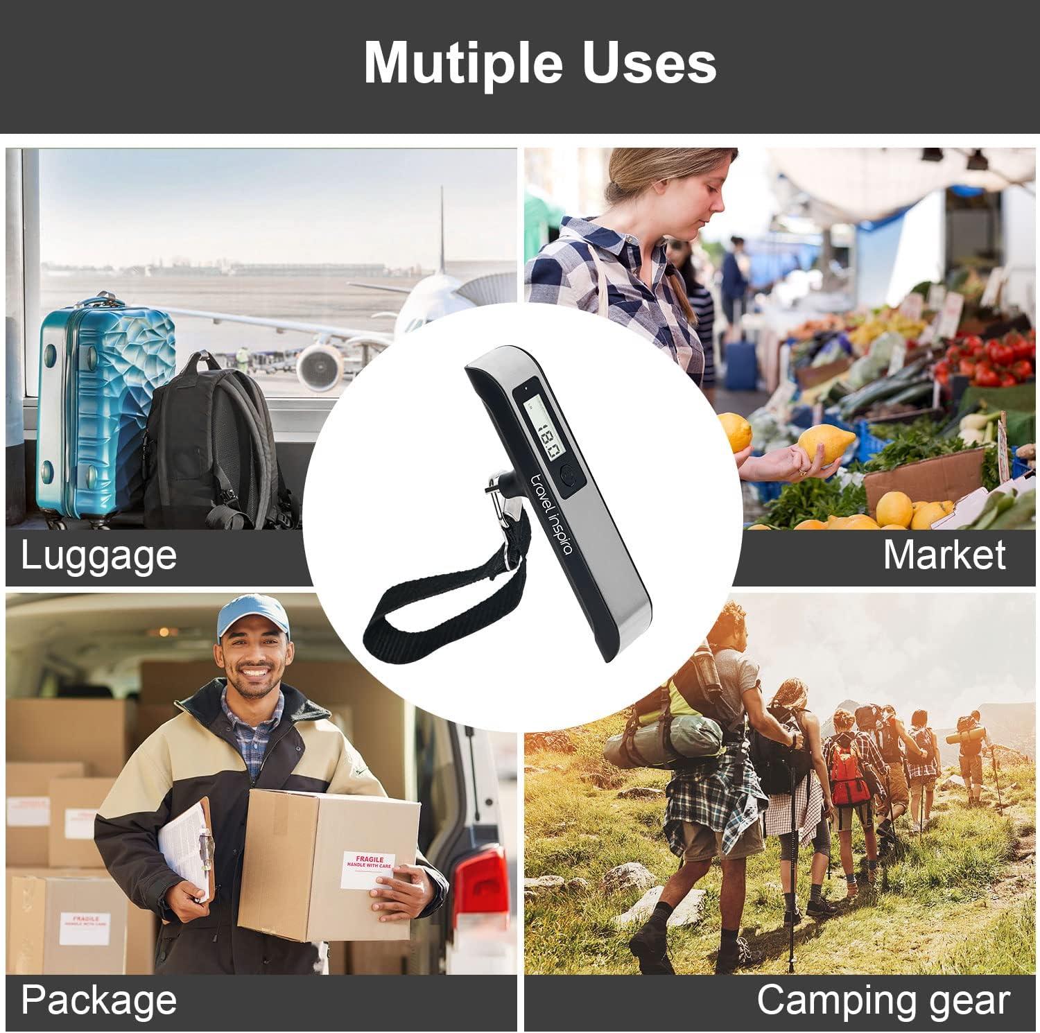travel inspira Luggage Scale, Portable Digital Hanging Baggage Scale for Travel, Suitcase Weight Scale with Rubber Paint, 110 Pounds, Battery Included(Black)