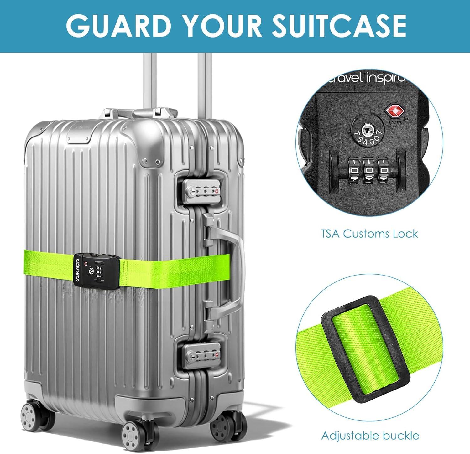 Travel Inspira Luggage Straps for Suitcases with TSA Lock, Protect Your Luggage Anti-Burst, High Visibility Color, Easy to Identify Luggage Adjustable Heavy Duty Belt for 20-32 Inch Suitcases(Fluorescent Green)